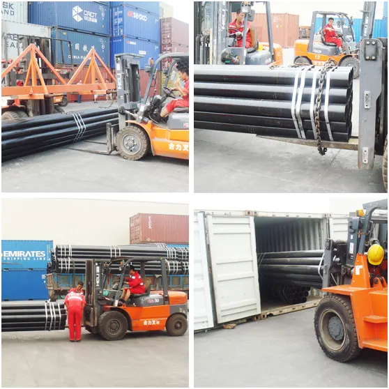 Steel pipes are bundled with galvanized steel straps, wrapped in moisture-proof film (for African humidity/Middle East sand), and placed on wooden pallets (ISPM 15 certified) to prevent damage during transit.